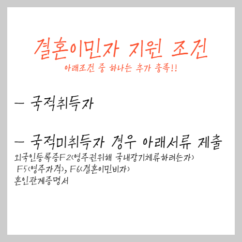 - 소득요건 : 가구소득 기준 중위소득 150% 이하 (주민등록등본상 가구기준으로 산정하며, 공고일 전월 건강보험료 월 부과액으로 산정)