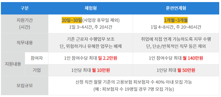 위의 내용처럼 본 사업의 취지에 맞게 저소득층, 청년 등의 취업취약계층이 더 나은 일자리로 취업할 수 있도록 내실 있는 일경험을 제공할 수 있어야 사업 참여가 가능합니다. 운영계획을 검토하여 이러한 일경험의 제공이 어렵다고 판단되면 신청이 반려될 수 있는데 사실 크게 까다롭거나 힘든 내용이 아니니 대부분 가능할 것으로 판단되니 꼭 신청하셔서 우수한 인재들을 발굴할 수 있는 기회와 지원금의 두 마리 토끼를 모두 잡으시기를 바라겠습니다.