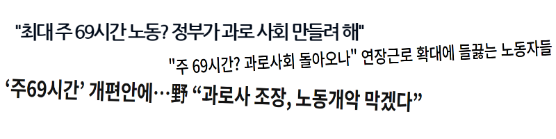 결론부터 말씀드리자면 현행보다 근로 시간은 적어집니다. 현행 제도의 최대 주 52시간 근무제는 매주마다 52시간, 즉 소정근로시간 40시간에 매주 12시간의 연장근로를 하더라도 위법이 아닙니다. 그러나 개편안의 주 69시간 근무제의 경우는 한 주 최대 69시간이 될 수도 있다는 것이며 매주마다 69시간을 근무시킬 수는 없습니다.